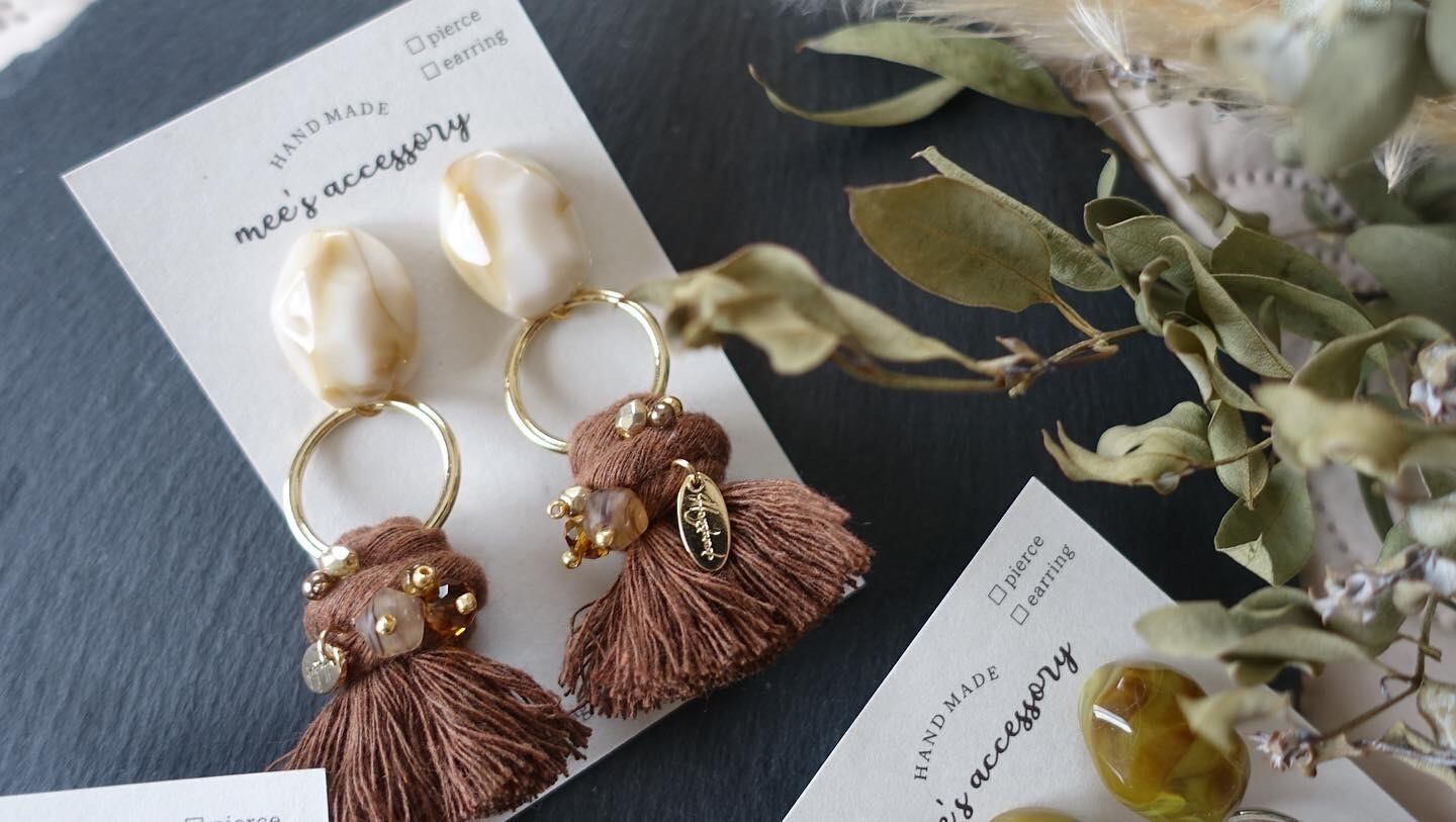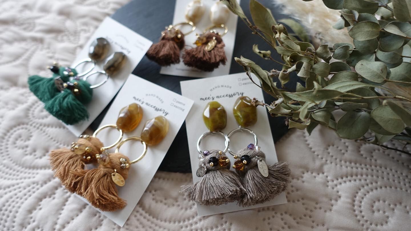 秋色タッセルにつぶつぶビーズ