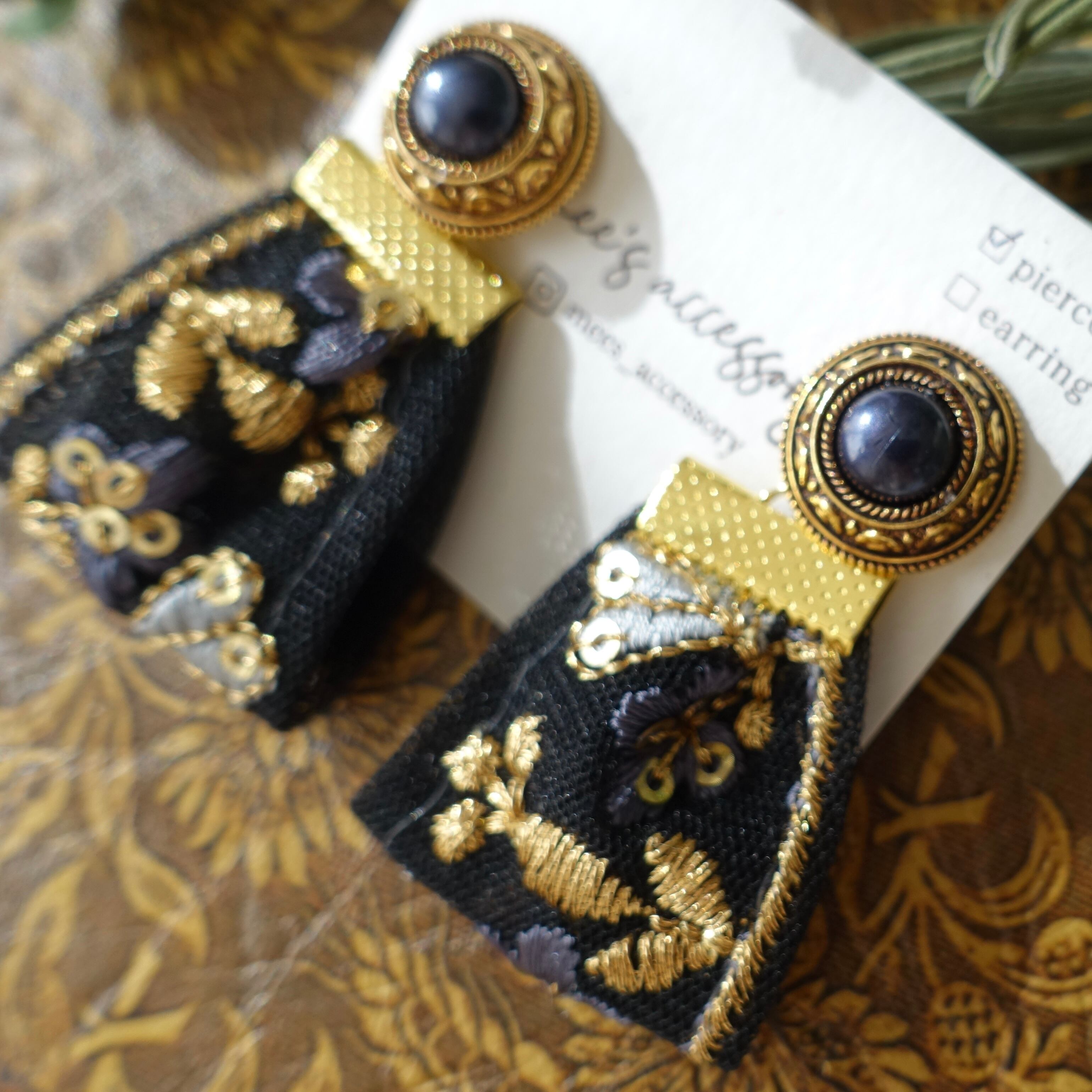 オリエンタルなボタンには黒の刺繍リボンを合わせました*
