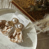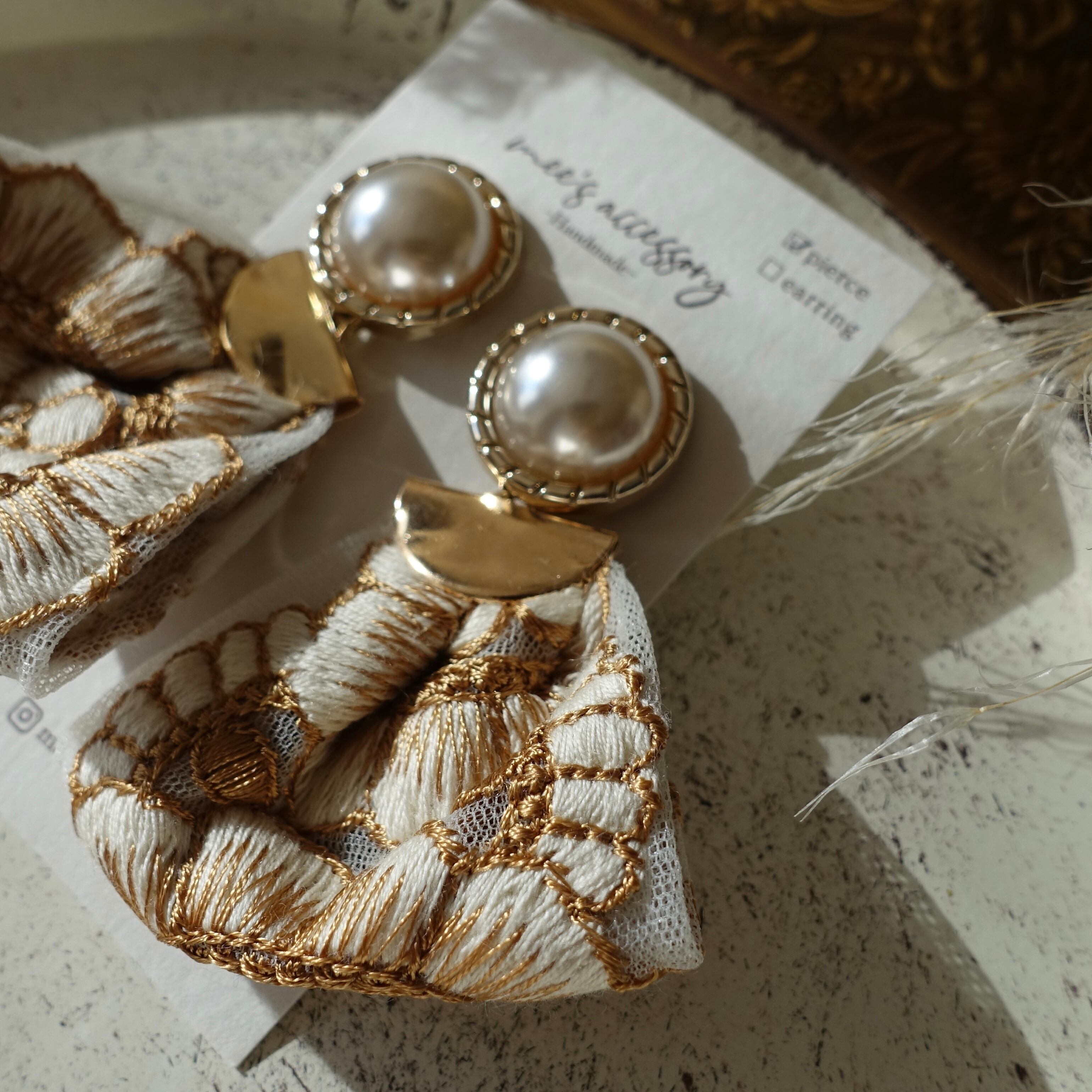 ちゅるんとした可愛らしいホワイトパールボタンと、大振りな花刺繍のチュールリボンを合わせました*