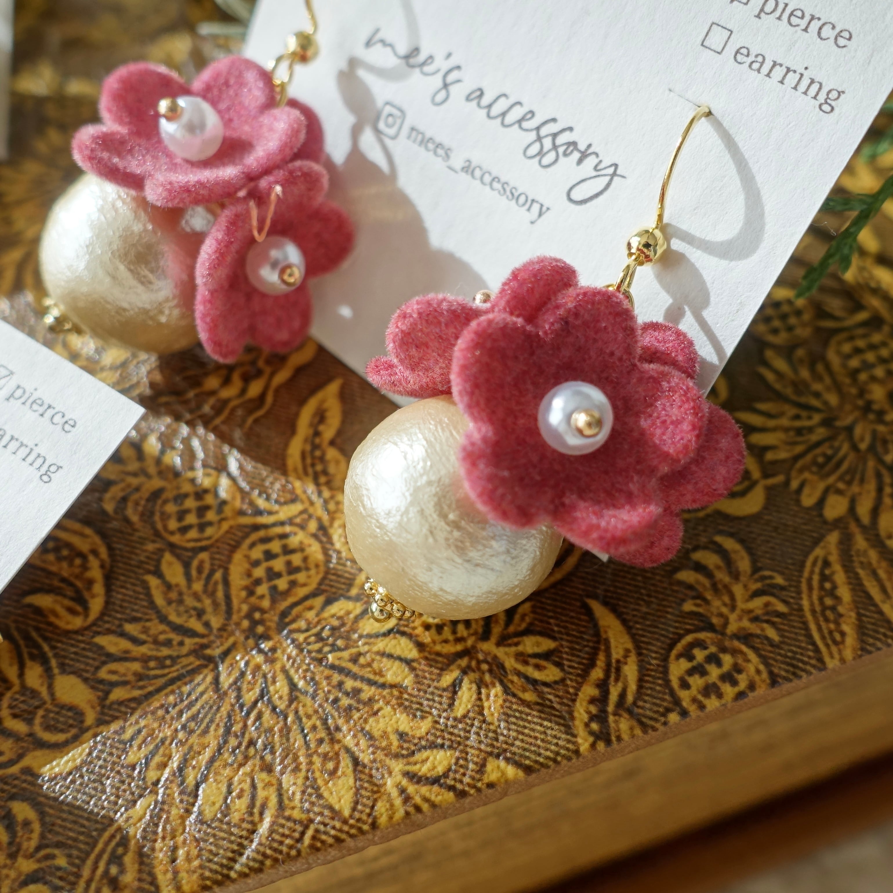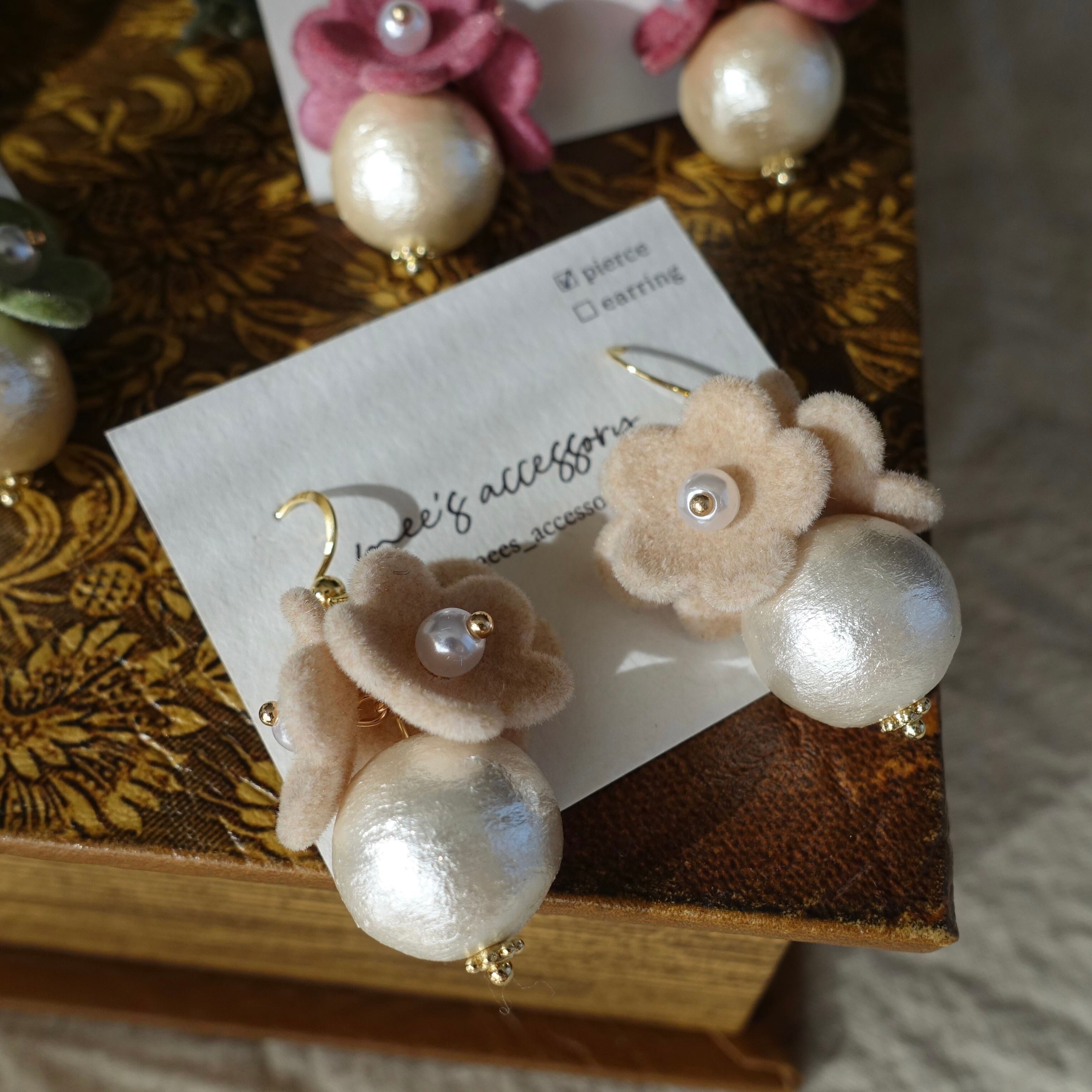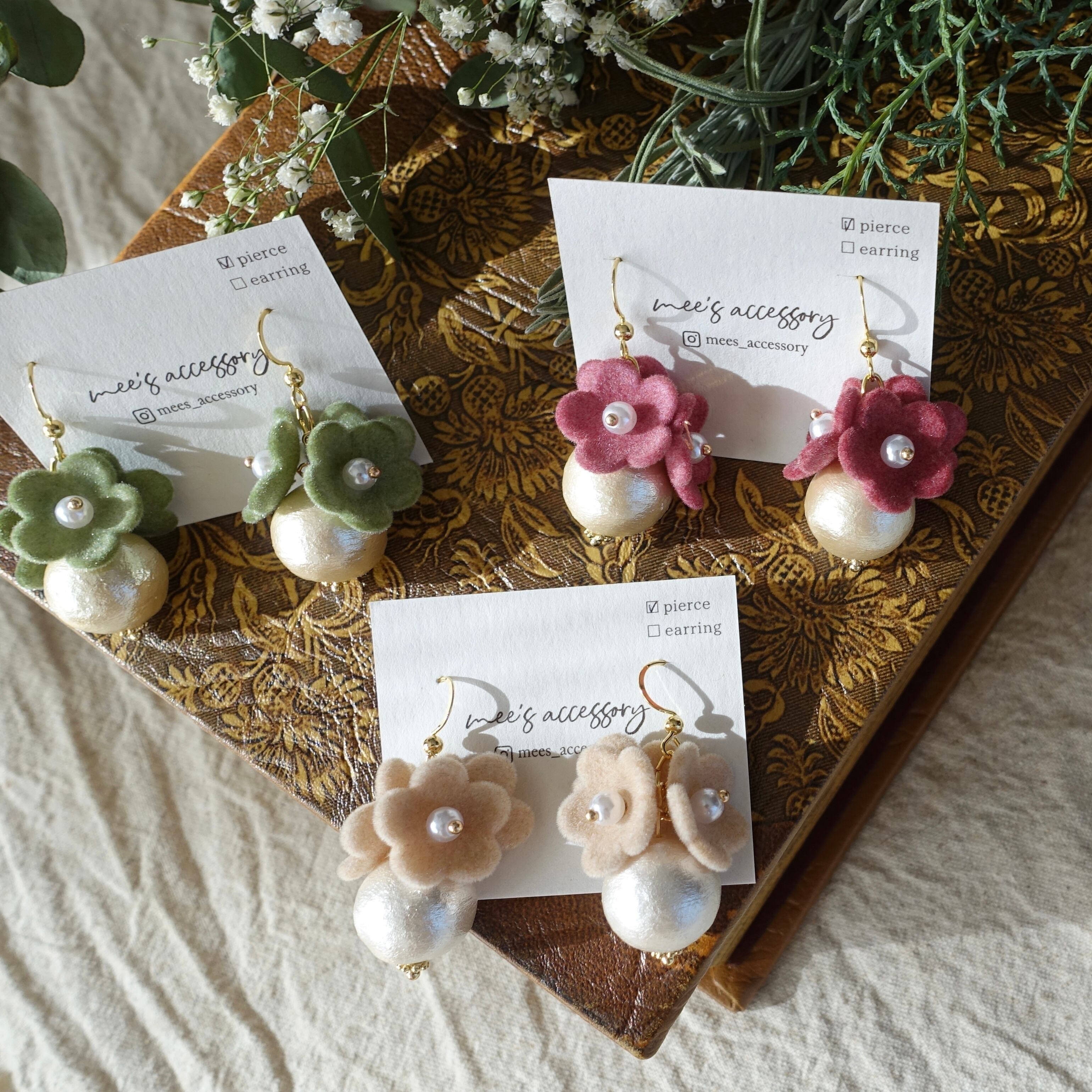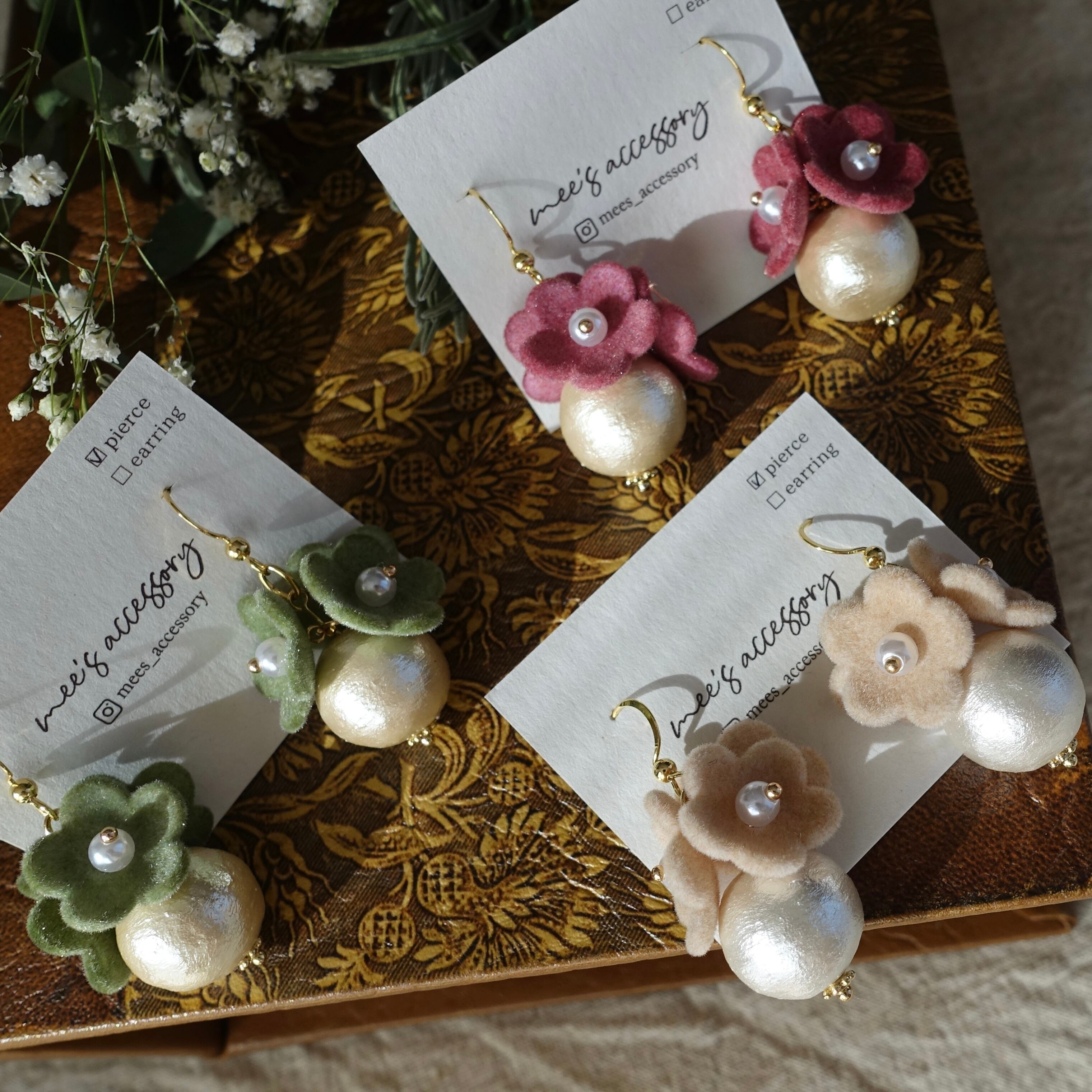 ふわっとしたフロッキー加工が可愛いお花とコットンパール*