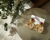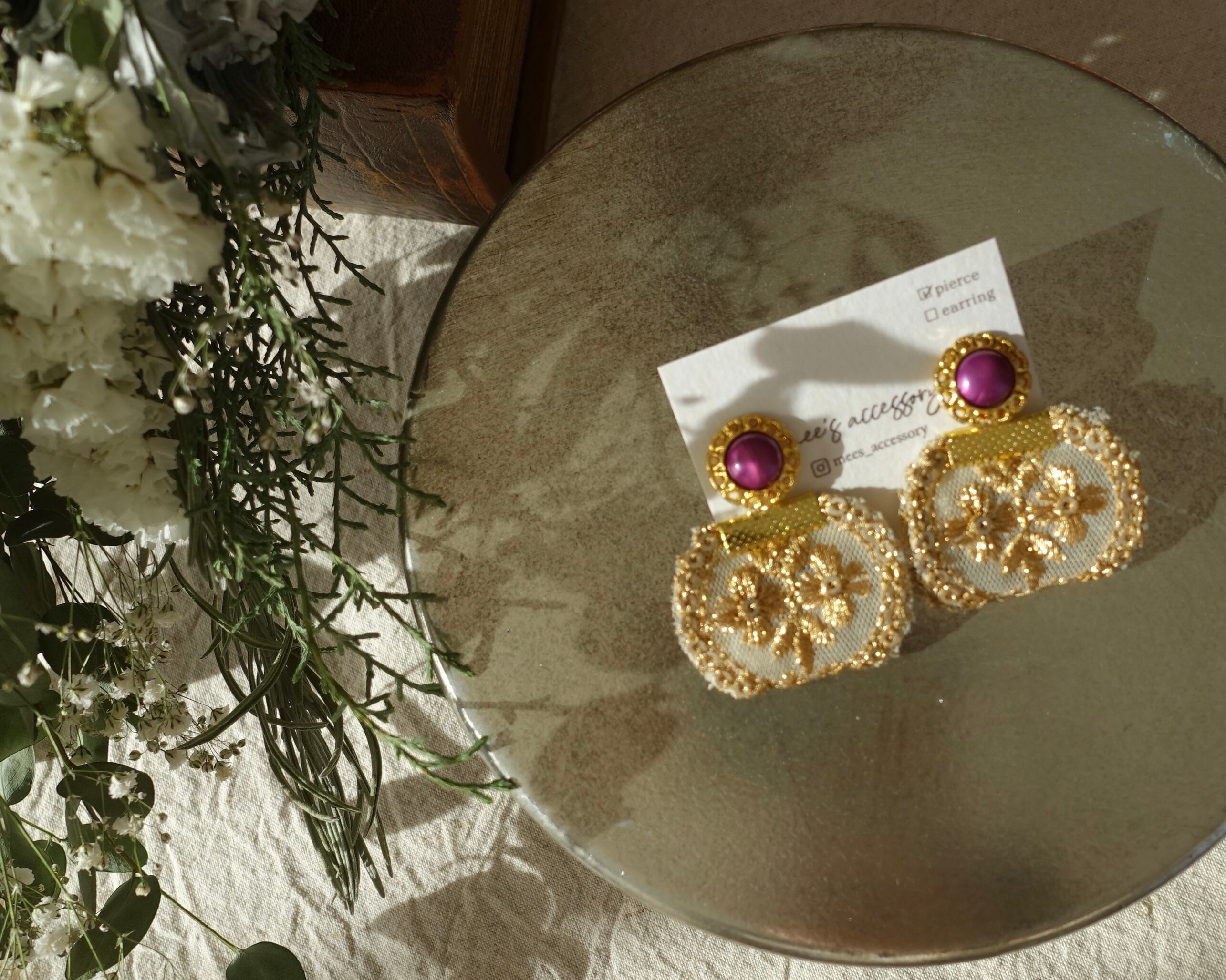 ゴールドの刺繍リボンと合わせる事で大人可愛いデザインに仕上げました。
