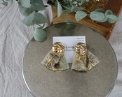 珍しいデザインのゴールドボタンとグリーンチュールの刺繍リボンを合わせました*