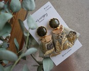 深いグリーンのぷっくりボタンと、同系色のチュール刺繍リボンを合わせました*