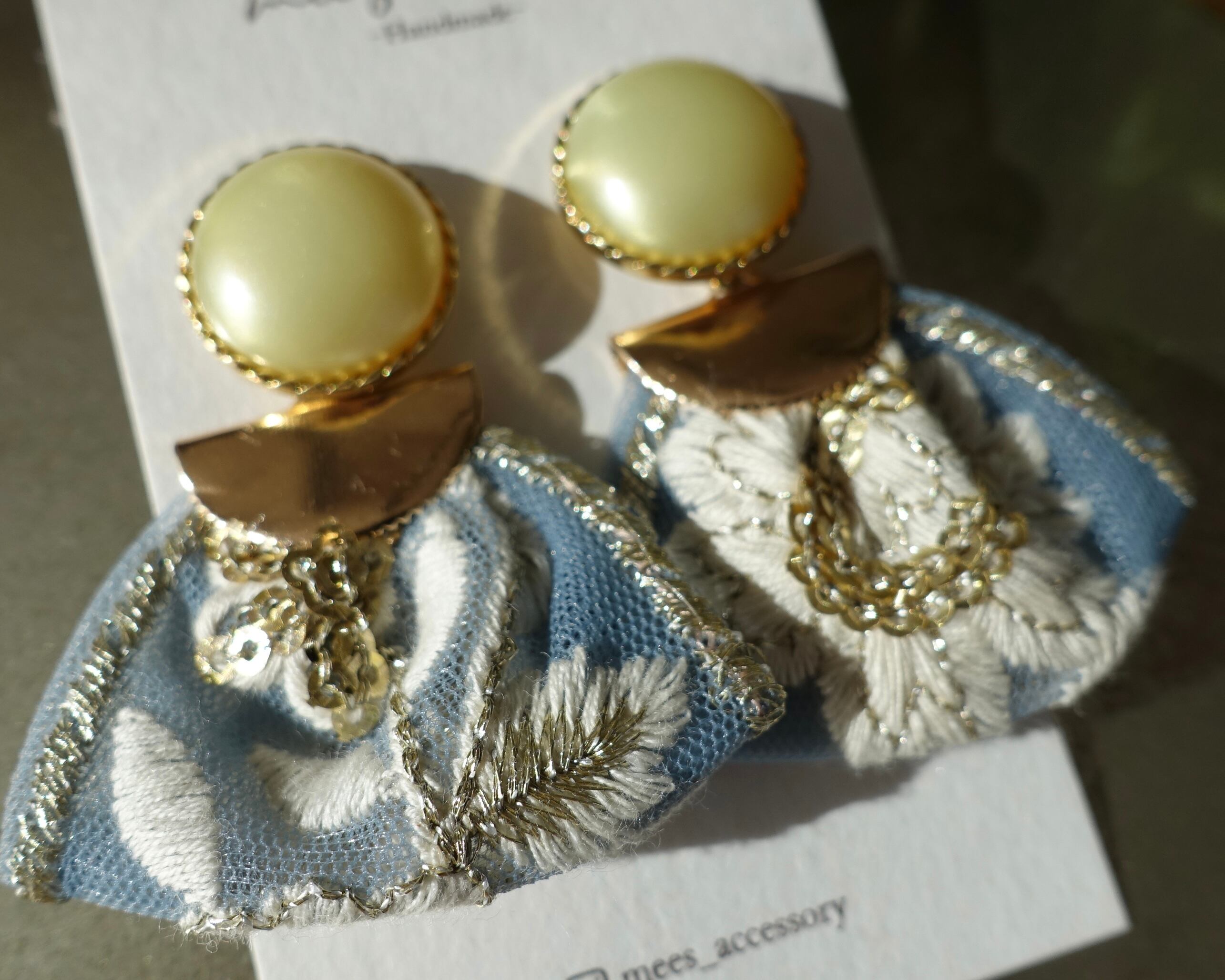 爽やかなレモンイエローのぷっくりヴィンテージボタンと、同じく爽やかな水色のチュールリボンを合わせました*