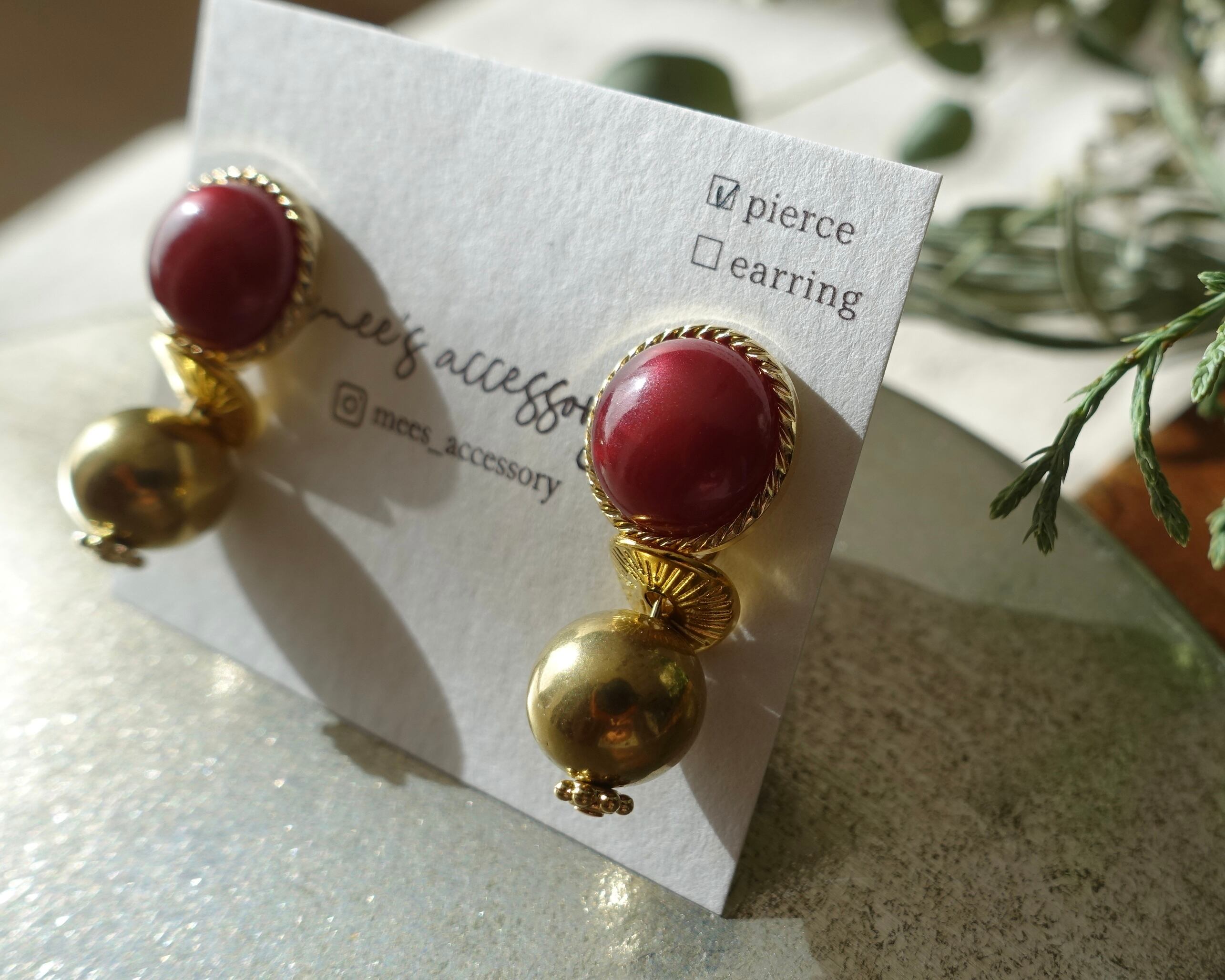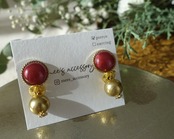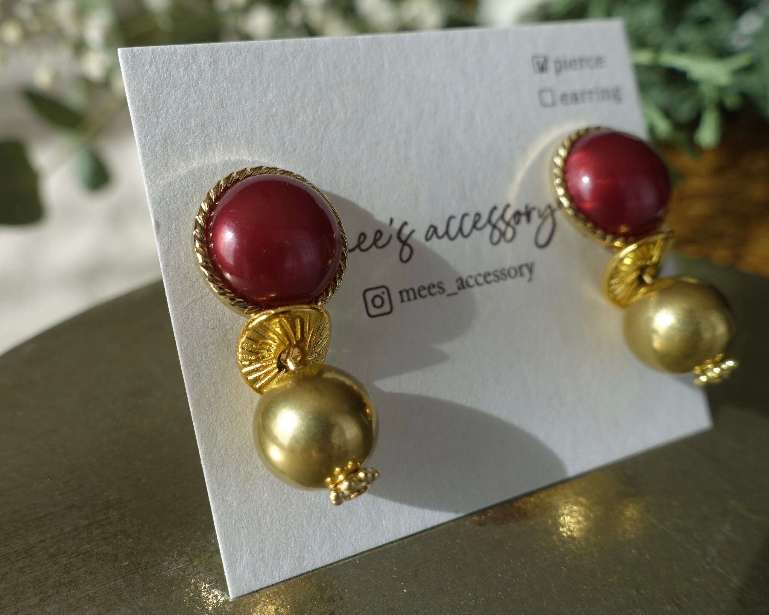 パッと目を惹く鮮やかな赤のボタンに、相性の良いゴールドのパーツを合わせました*