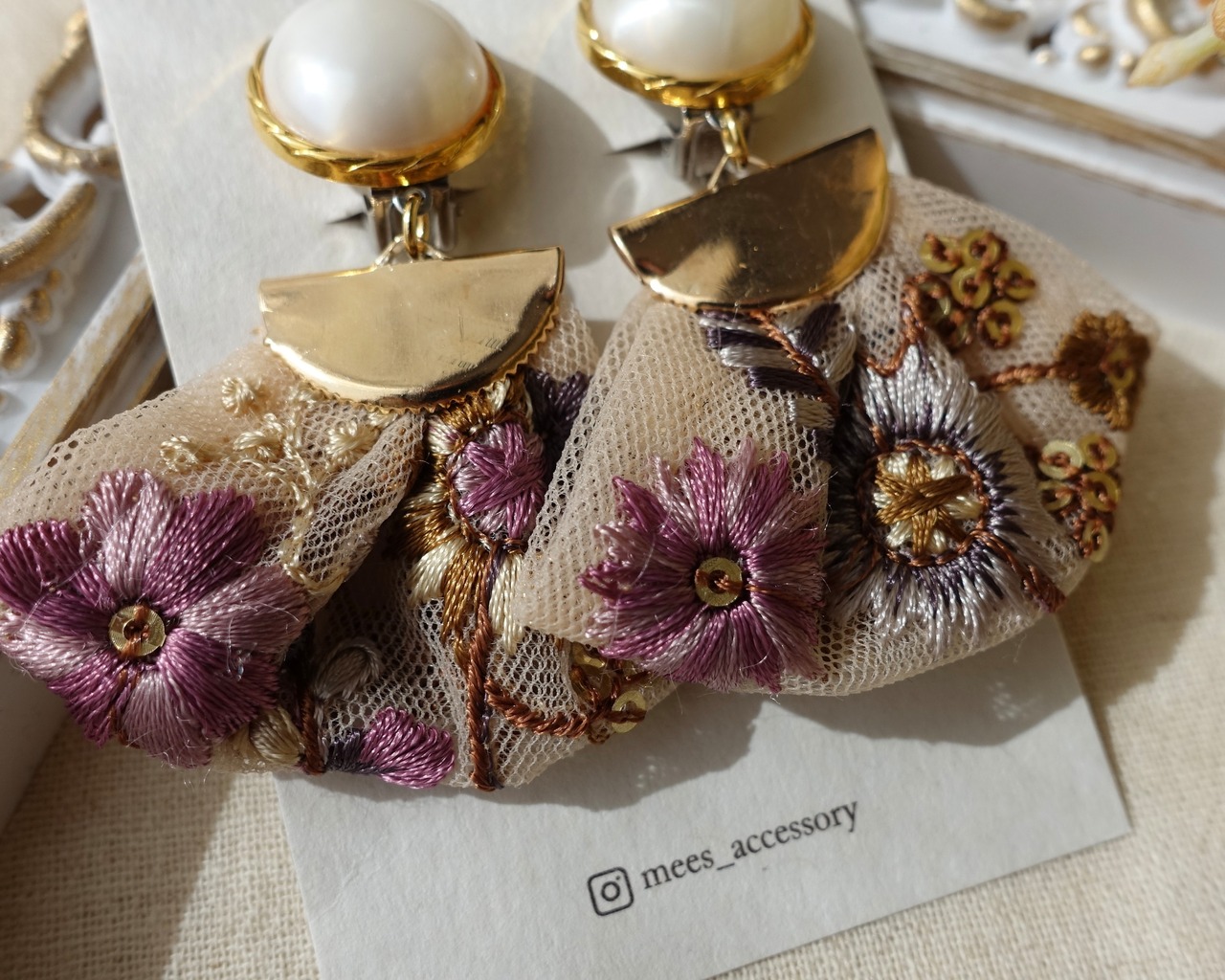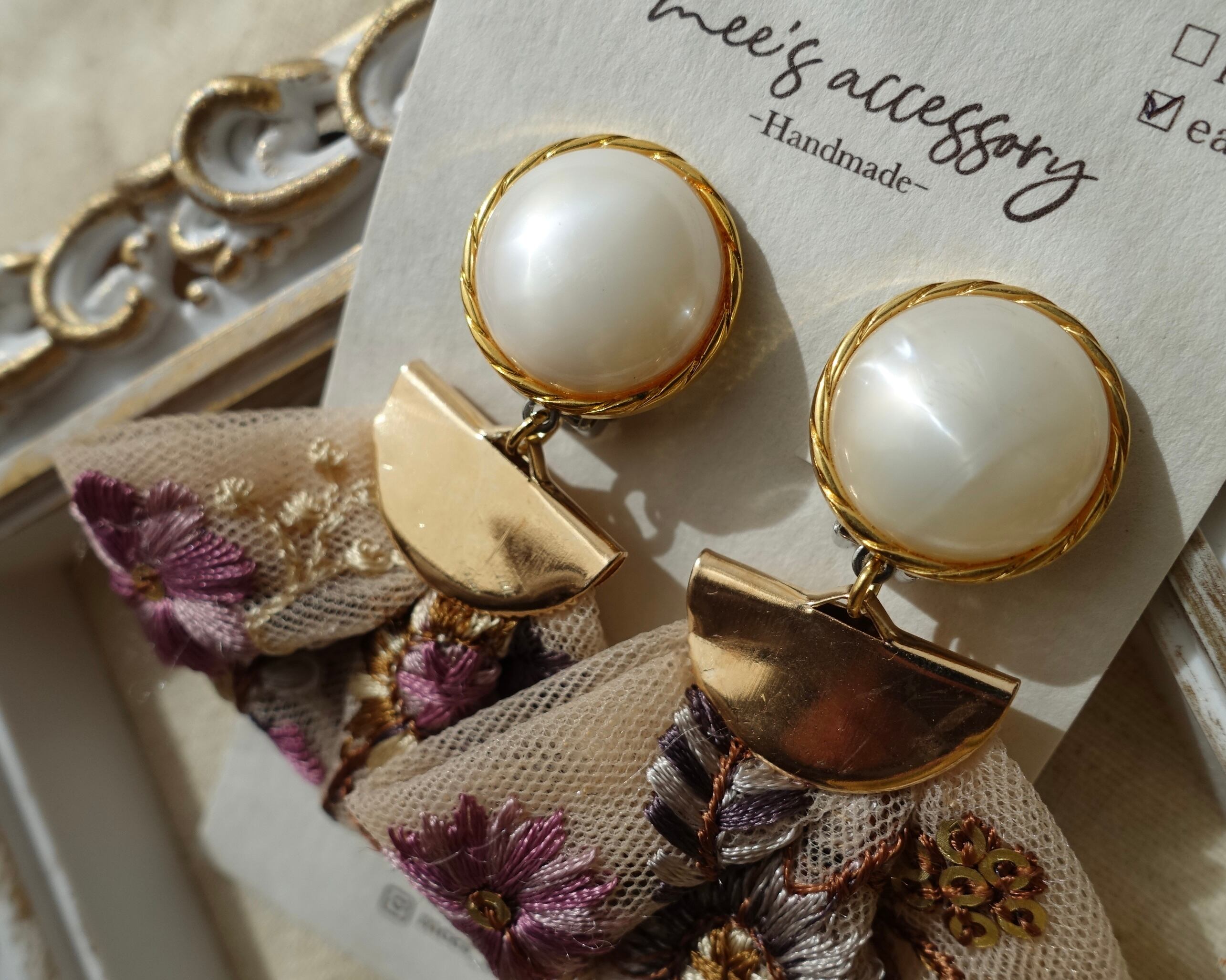 ちゅるんとしたホワイトパールボタンと、くすみピンクが可愛らしいチュールリボンを合わせました*
