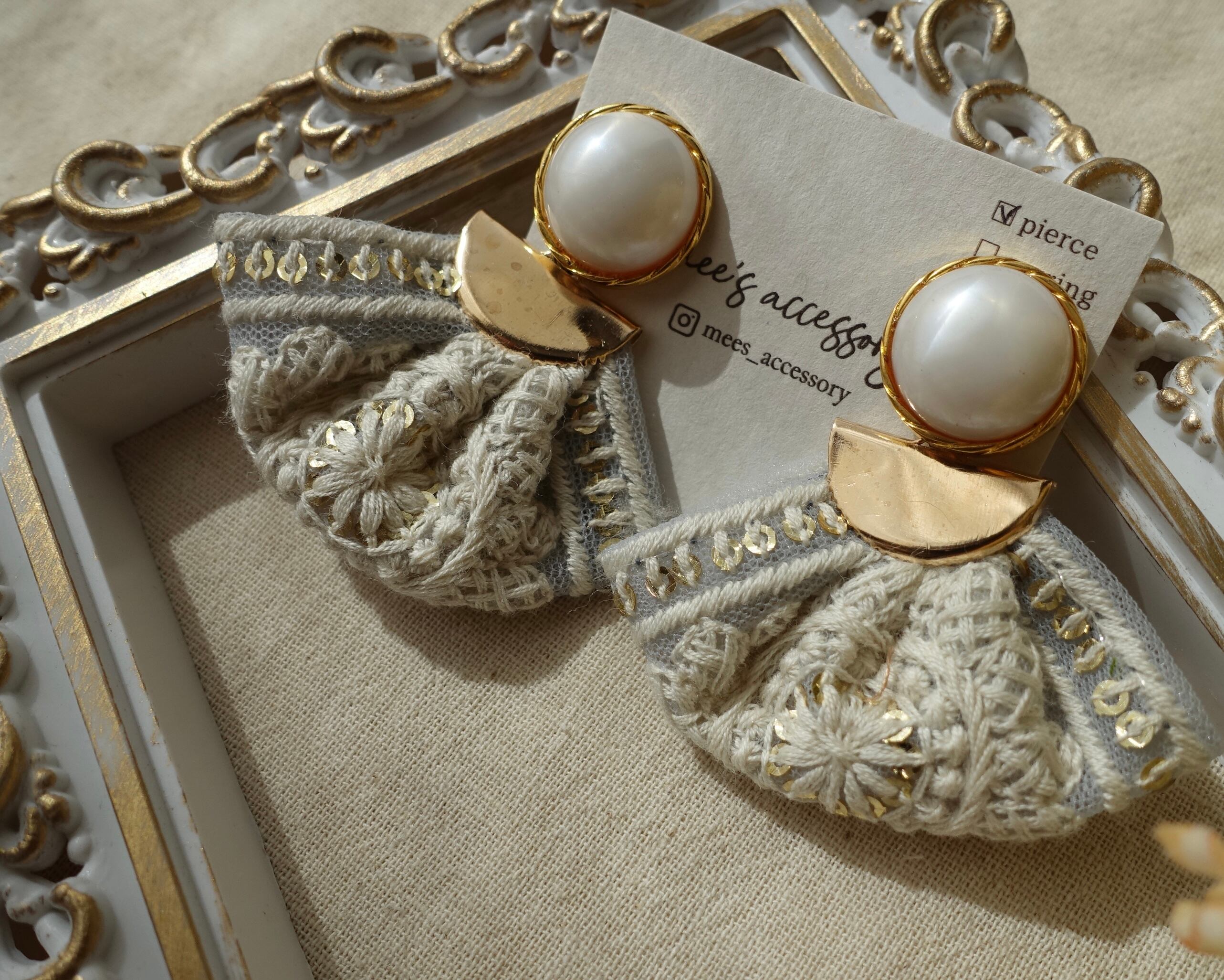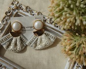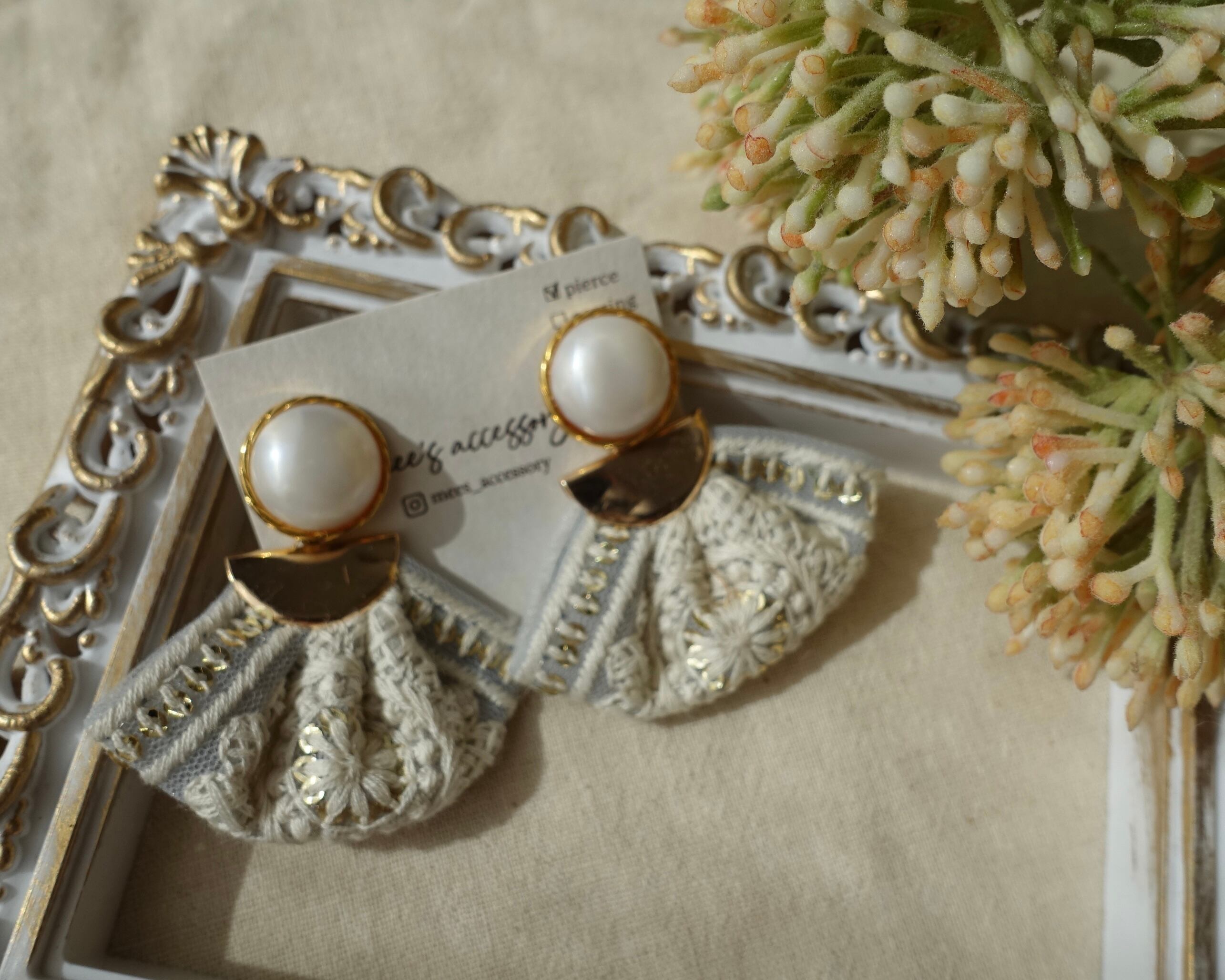 ちゅるんとしたホワイトパールボタンと、淡いグレーの上品な刺繍リボンを合わせました*