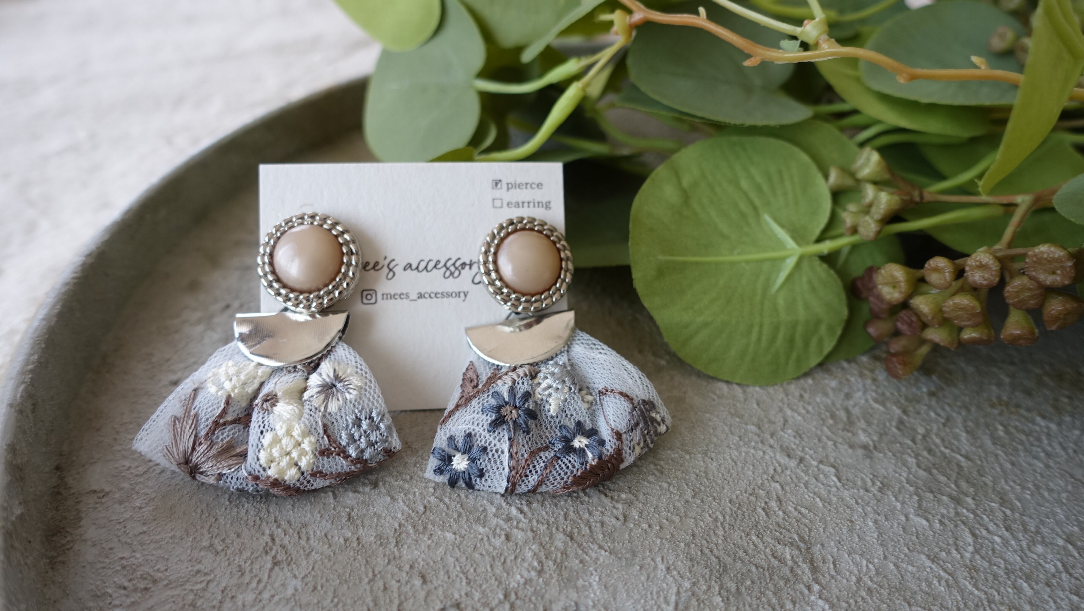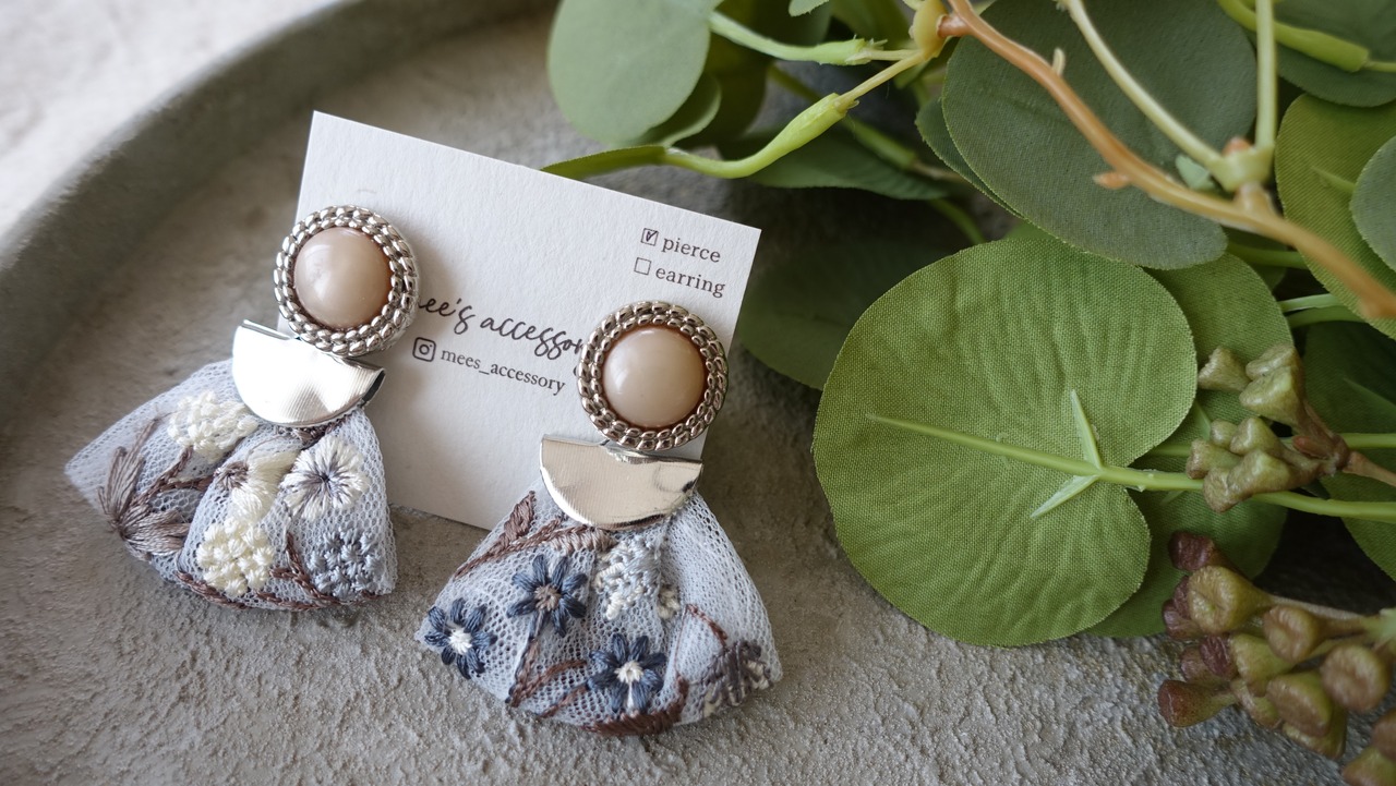 淡いカラーリングのチュール刺繍リボンを合わせました。